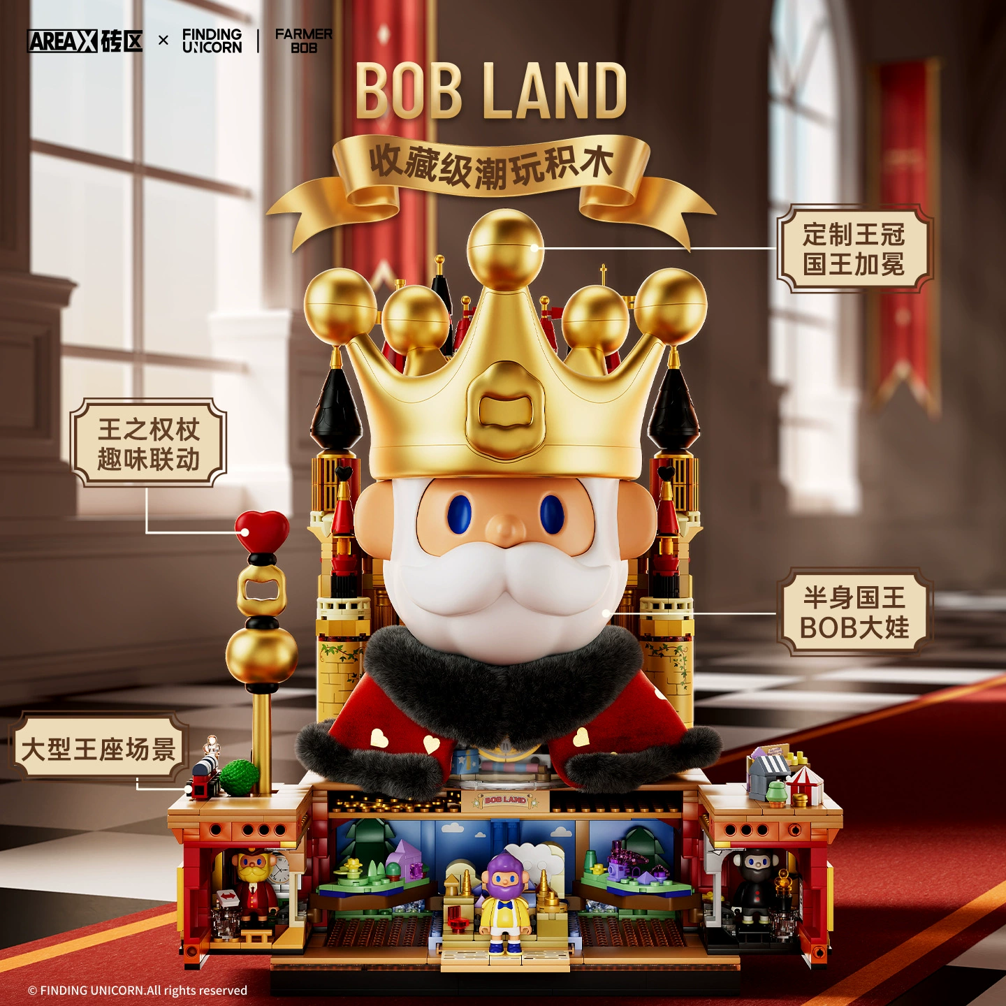 【全球限量】AREAX砖区寻找独角兽FARMERBOB国王大体积木礼物摆件
