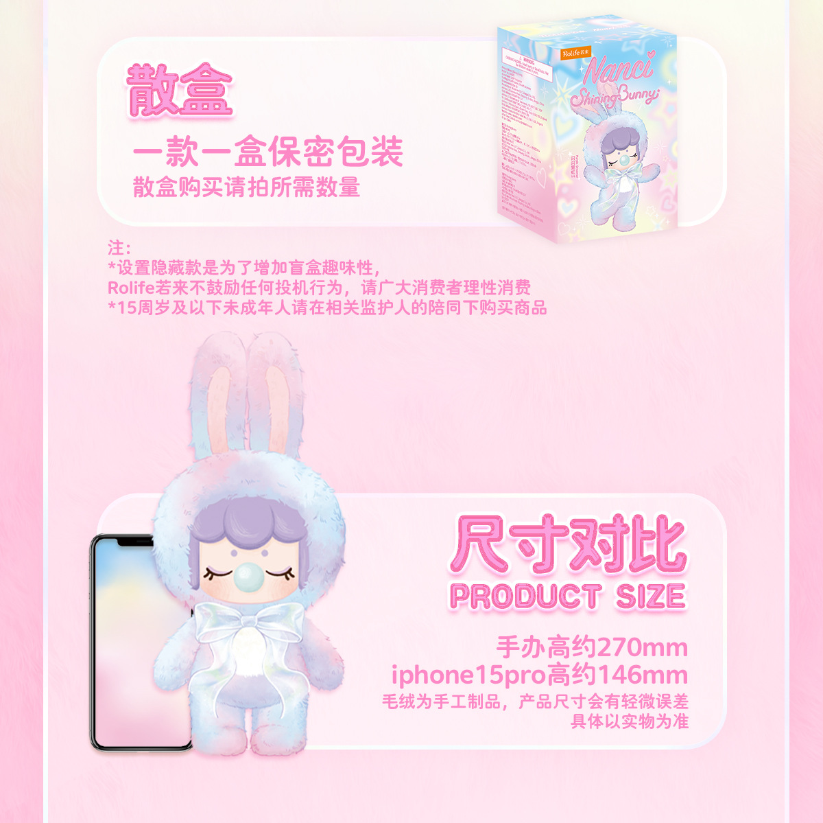 rolife若来Nanci囡茜闪光毛绒小兔系列盲盒生日新年礼物送女孩